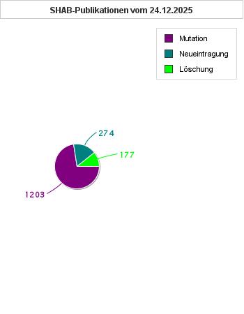 Heute am 24.12.2025 wurden 274 Neugründungen, 1203 Mutationen und 177 Löschungen im Schweizer Handelsamtsblatt publiziert.