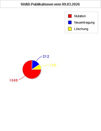 Heute am 09.03.2026 wurden 212 Neugründungen, 1063 Mutationen und 129 Löschungen im Schweizer Handelsamtsblatt publiziert.
