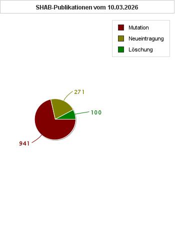 Heute am 10.03.2026 wurden 271 Neugründungen, 941 Mutationen und 100 Löschungen im Schweizer Handelsamtsblatt publiziert.